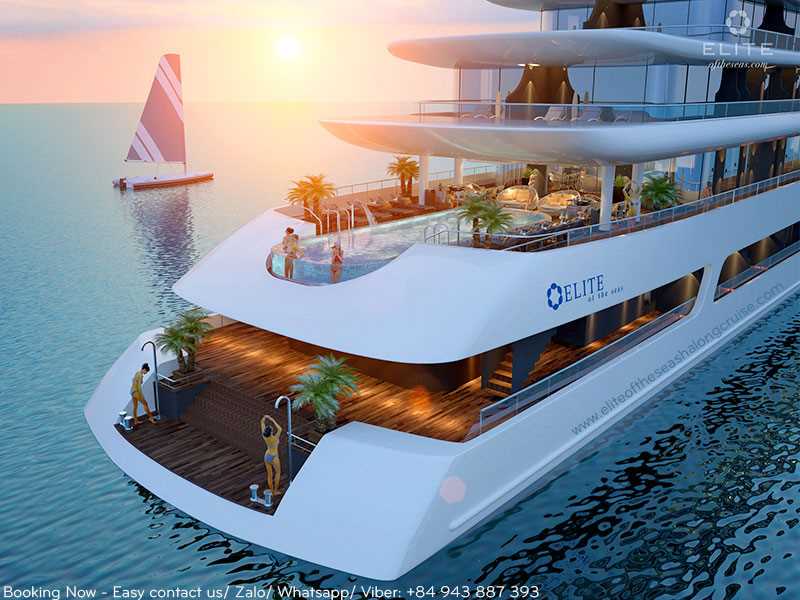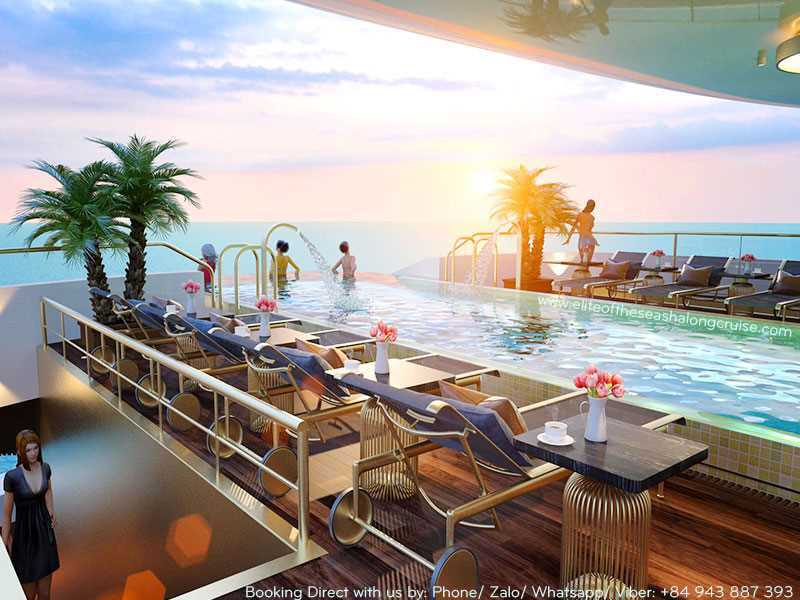- All meals on board: 01 set lunch, 01 fine dining BBQ swimming pool dinner, 1 set dinner, 02 light breakfast, 1 set menu lunch and 01 Vietnamese menu brunch